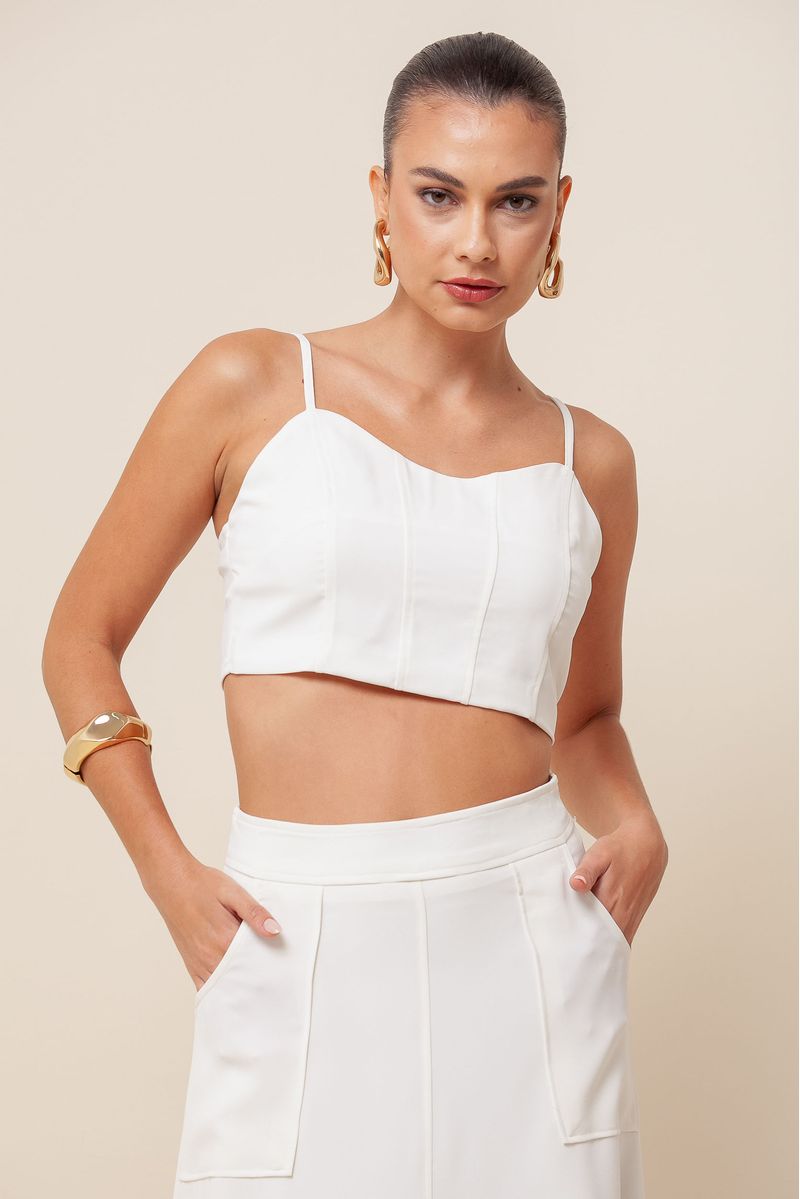 Top em crepe apresenta um encantador decote coração e alças finas reguláveis, garantindo conforto e um ajuste perfeito. Com lastex nas costas, ele se adapta ao corpo, proporcionando um caimento impecável.