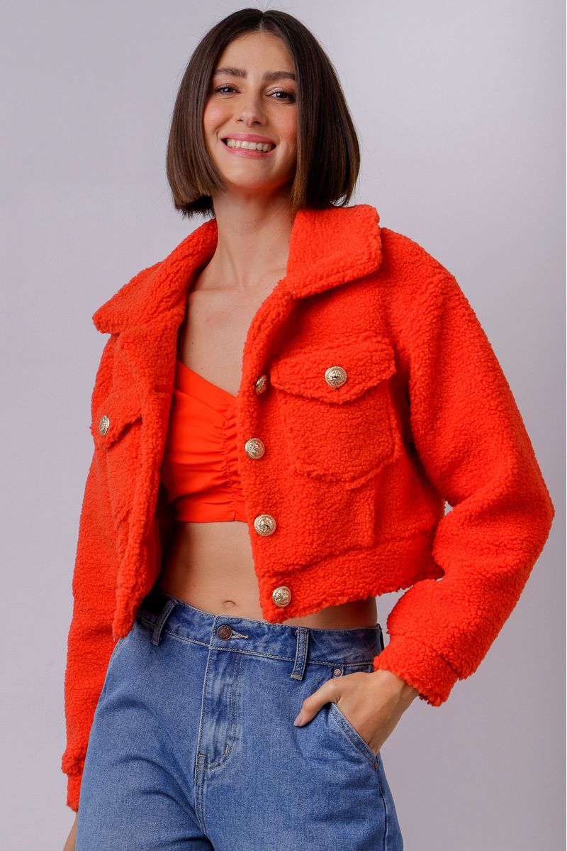 RoupasCasacosJaquetaJaqueta Cropped Teddy LARANJA