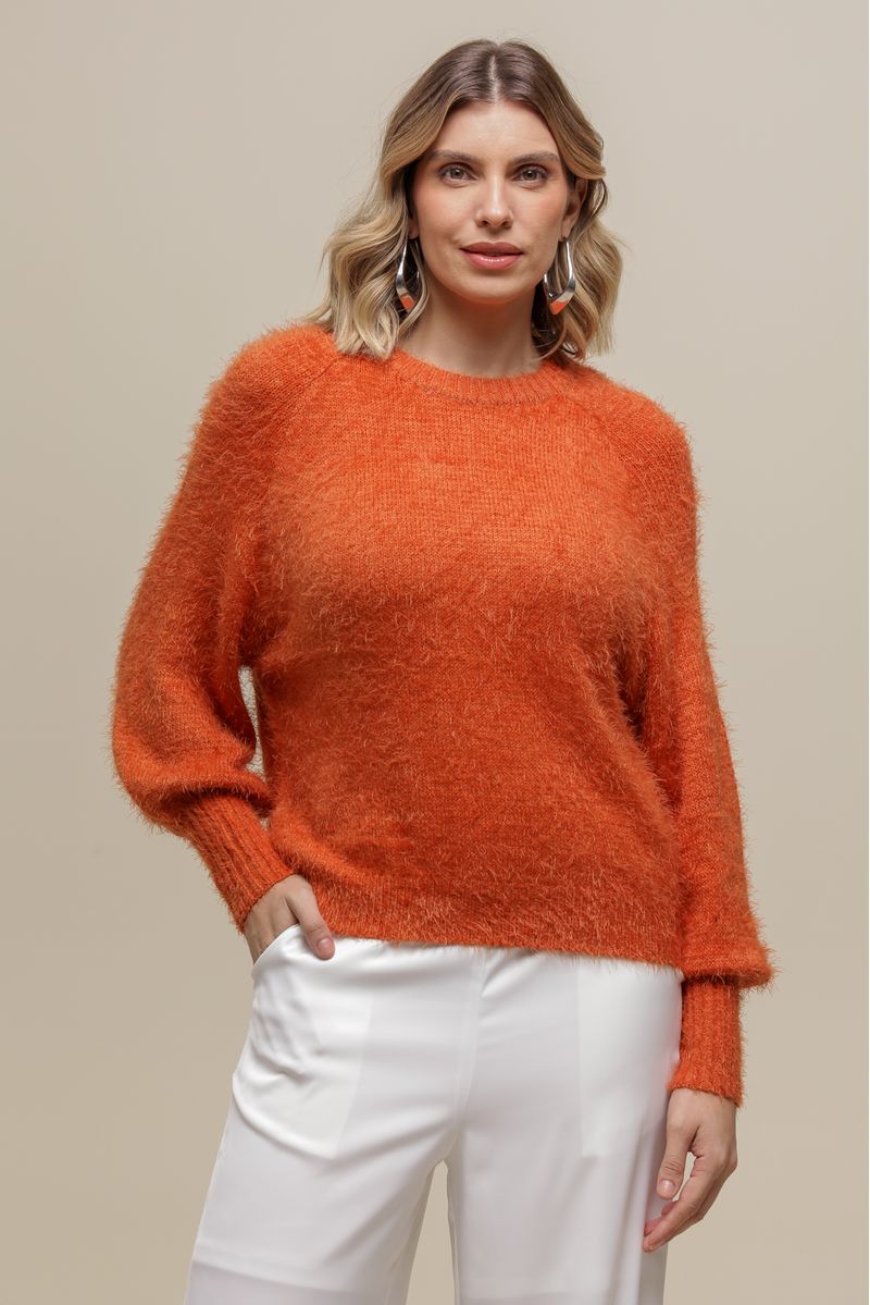 Blusa de tricô com toque macio e pelo discreto, perfeita para os dias mais frios. O modelo conta com manga longa e gola U, garantindo conforto e estilo em qualquer ocasião.