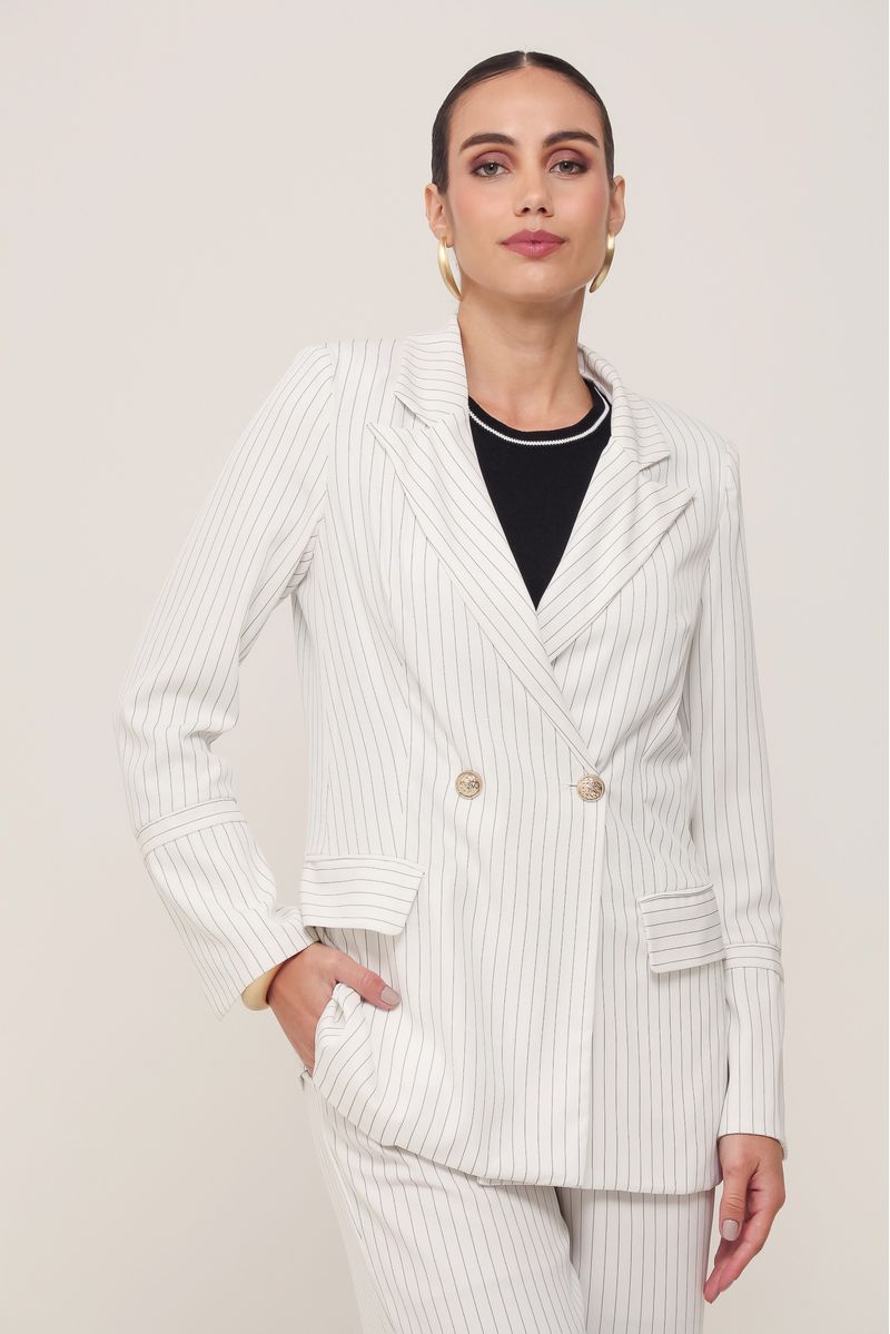 • Blazer amplo em crepe com risca de giz
