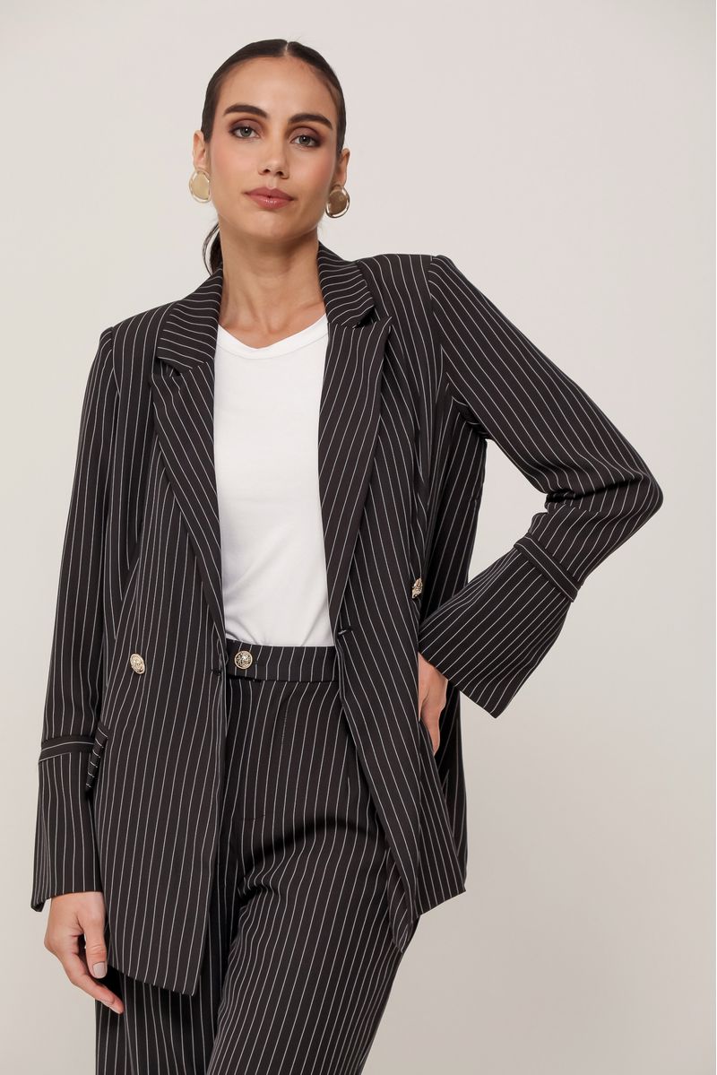 • Blazer amplo em crepe com risca de giz