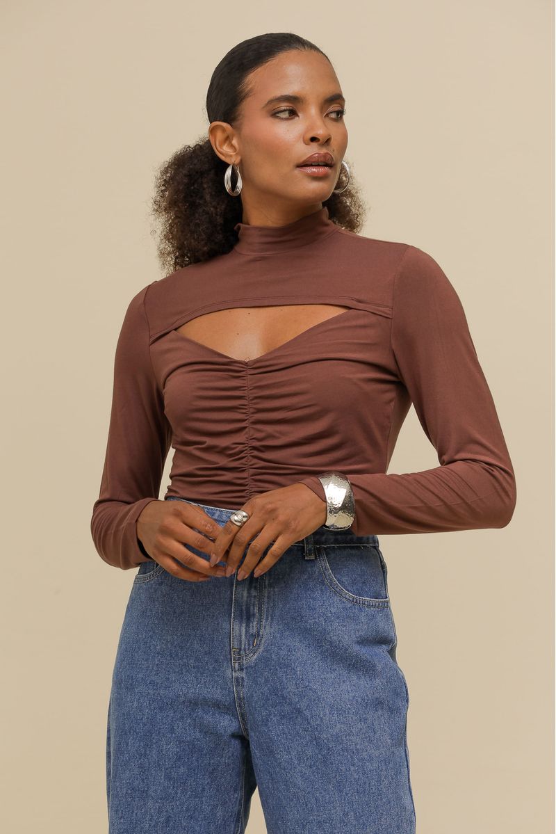 Blusa de Malha Franzido na Frente MARROM