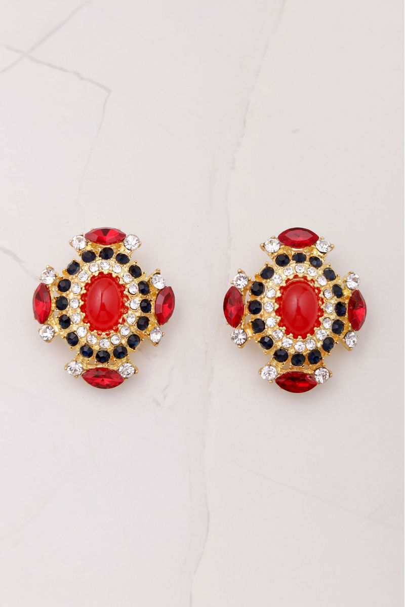Brinco pedraria com strass, fecho por tarraxa. Acompanha caixinha quadrada com moldura polipropileno com push e fita stretch.