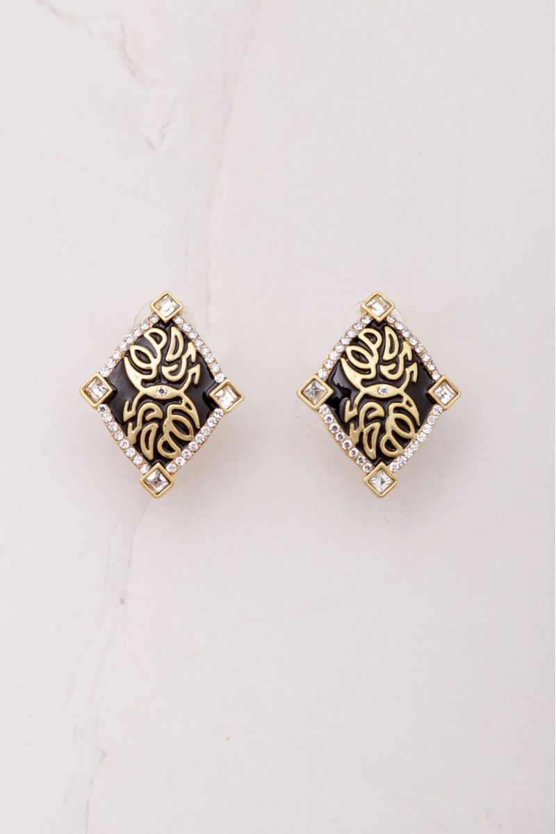 Brinco pedra trabalhado com aplicação de strass, fecho por tarraxa. Acompanha caixinha quadrada com moldura polipropileno com push e fita stretch.