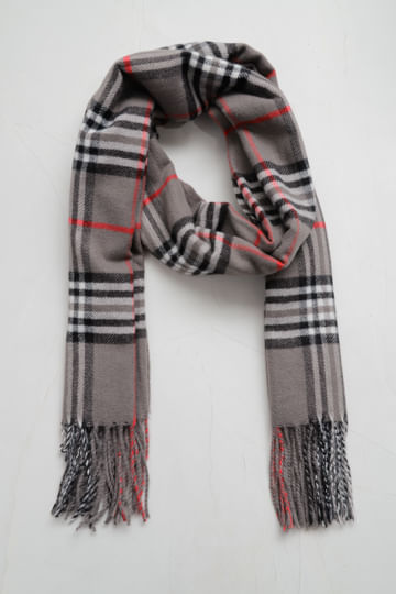 Cachecol flanelado com toque macio e acabamento leve. A padronagem clássica em tons neutros com linhas vermelhas traz um visual atemporal e elegante. Medidas: 70x190cm.