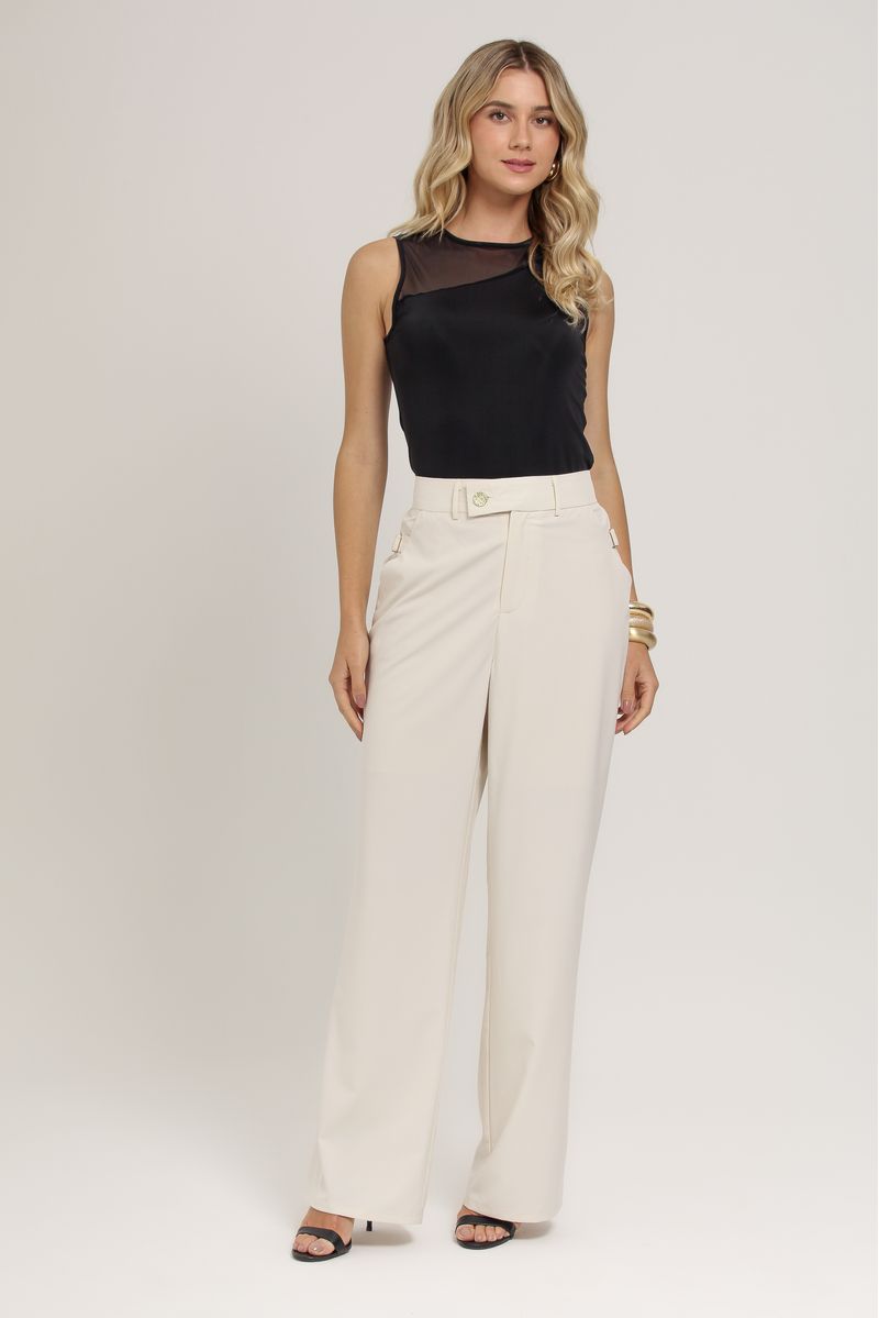 • Calça de alfaiataria em crepe com forro interno
