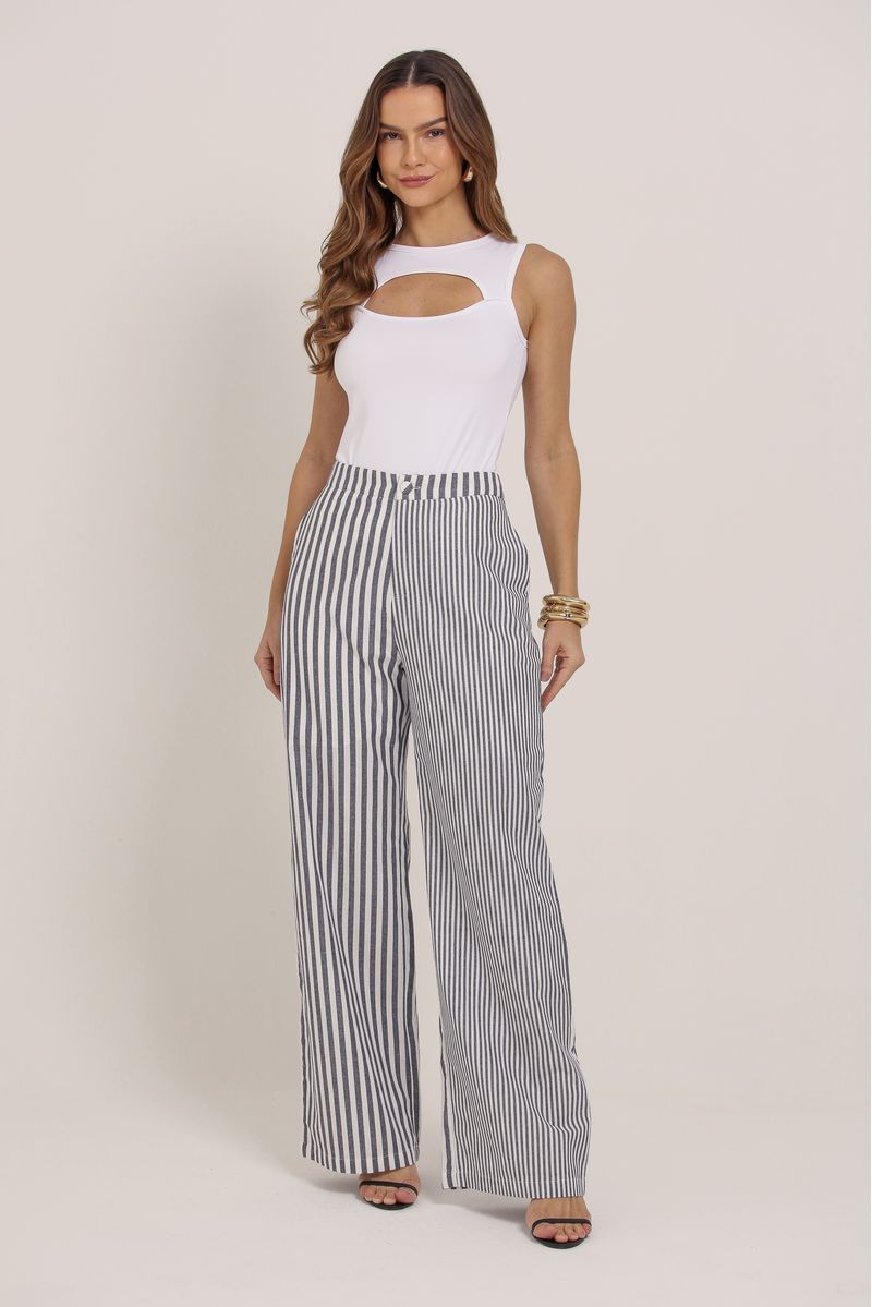 Calça Listrada Linho MARINHO