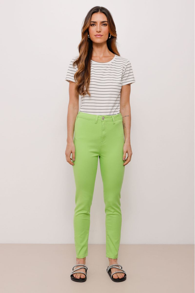 Calça skinny, confeccionada em sarja. Tecido leve e macio, cintura alta com fechamento por zíper e botão. Bolsos posteriores com pences para melhor ajuste ao corpo.