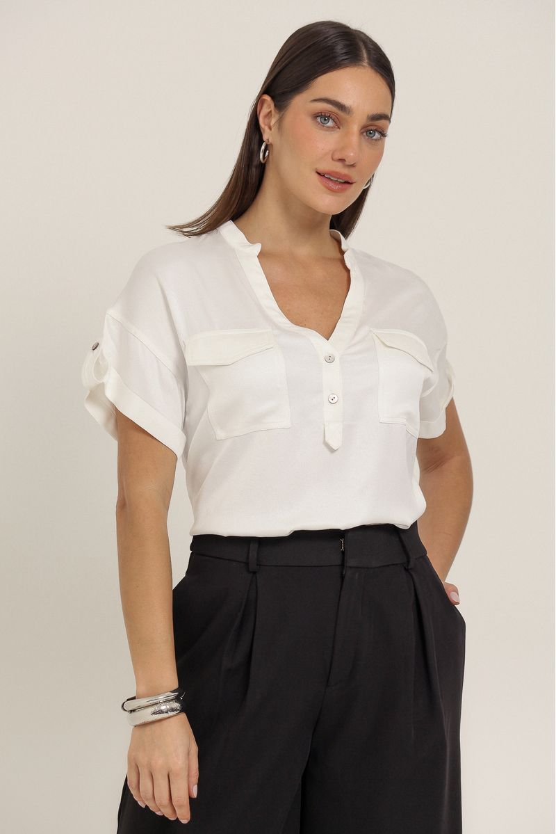 • Camisa com decote V e botões frontais