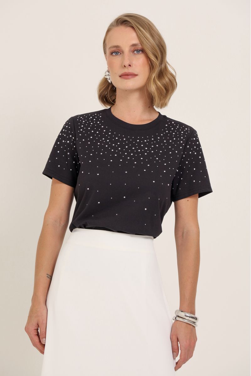 • Camiseta com aplicações de strass com brilho