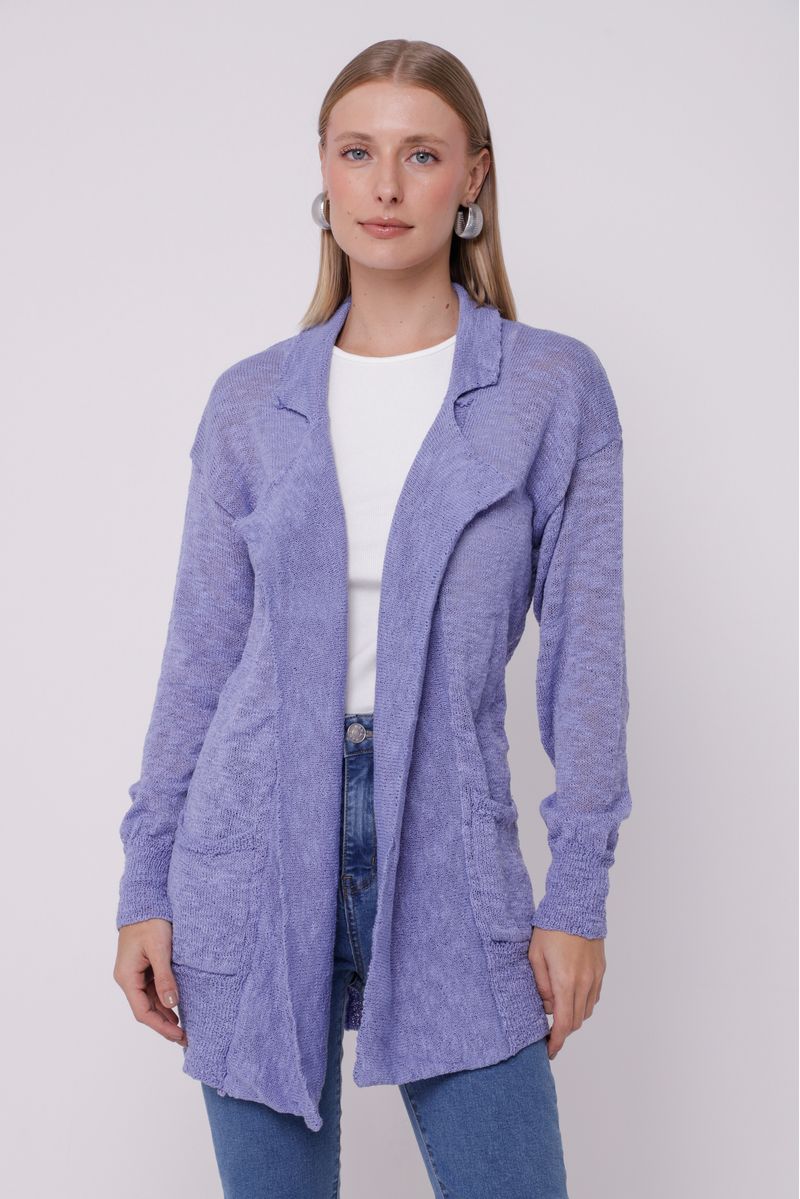 Casaco alongado, confeccionado em tricô com tecido flamê. Bolsos frontais que são práticos e funcionais. Não possui fecho frontal, punhos, gola e barras trançadas adicionando um charme extra.