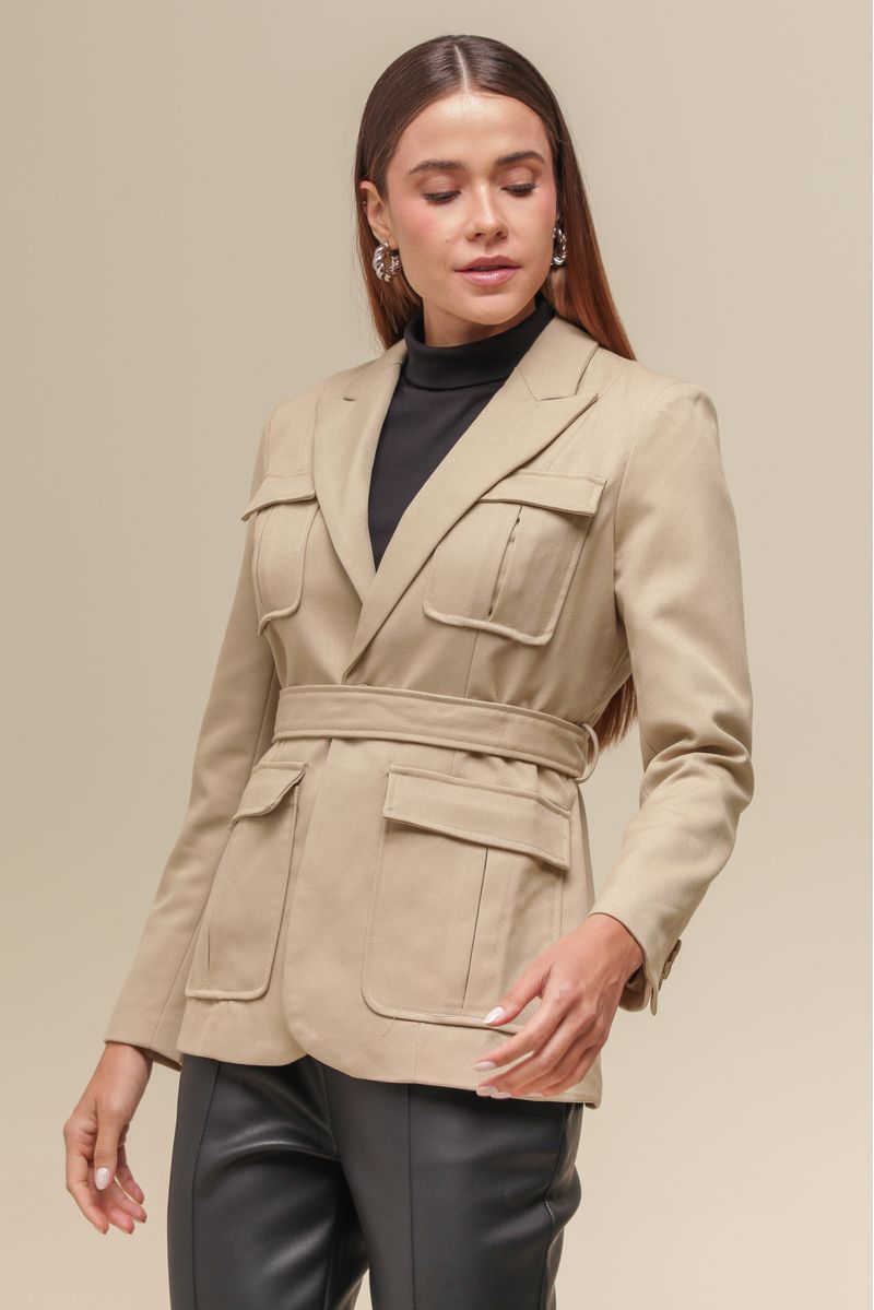 Casaco sarjado, com modelagem alongada e corte clássico. Possui forro interno acetinado, proporcionando conforto e um toque de sofisticação. Os bolsos frontais amplos com lapela adicionam praticidade e estilo, enquanto a gola tradicional confere um acabamento elegante. O fechamento é feito por um botão frontal, e a peça acompanha faixa da mesma cor e material para ajuste na cintura, garantindo um caimento perfeito.