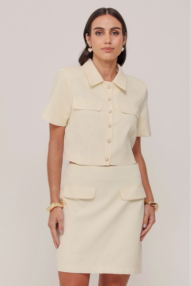 • Manga curta e gola estruturada