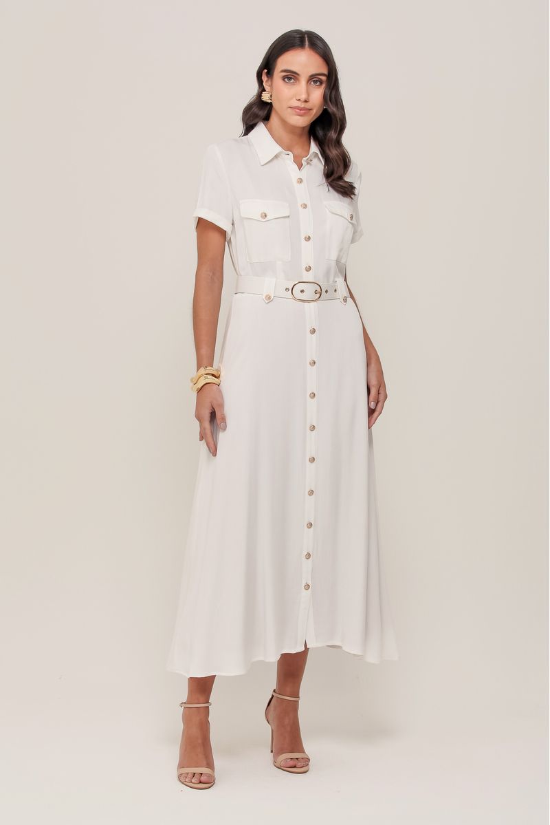 • Acompanha cinto em PU revestido no mesmo tecido, com fivela dourada
