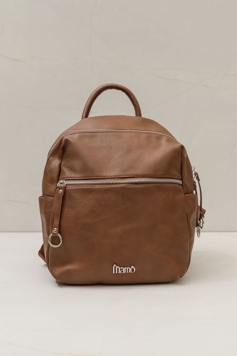 Mochila confeccionada em PU, com alças de costas ajustáveis e alça de mão fixa. Conta com bolso frontal com zíper, bolsos laterais e compartimento principal espaçoso, com forro interno e bolsos organizadores. O acabamento sofisticado é realçado pela plaquinha metalizada Mamô na parte frontal. Alças não removíveis.