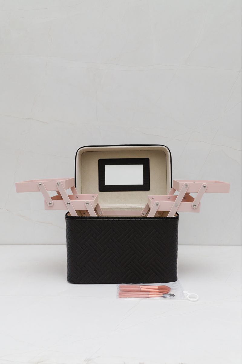 • Quatro camadas dobráveis com compartimentos para maquiagem e acessórios