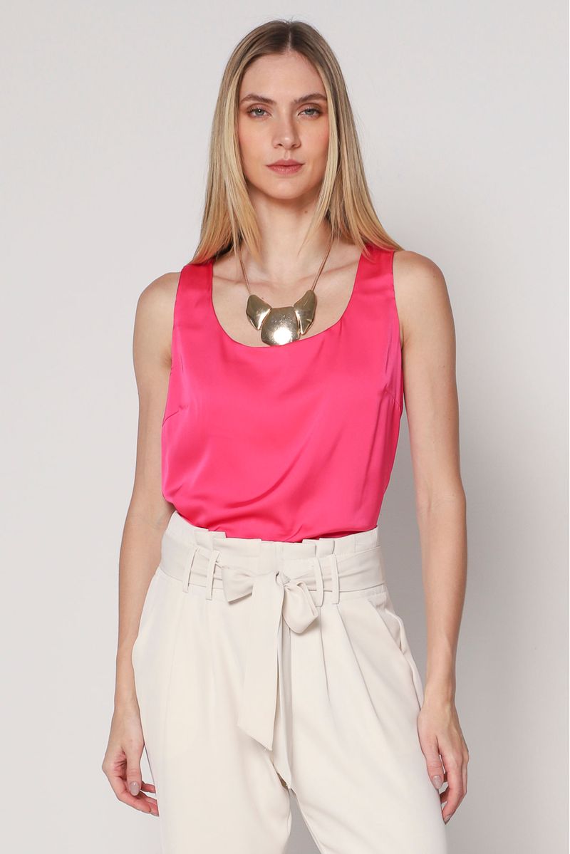 Com sua leveza e toque macio, a regata de seda vai deixar os seus looks mais elegantes e sofisticados, aposte com calça alfaiataria e scarpin.