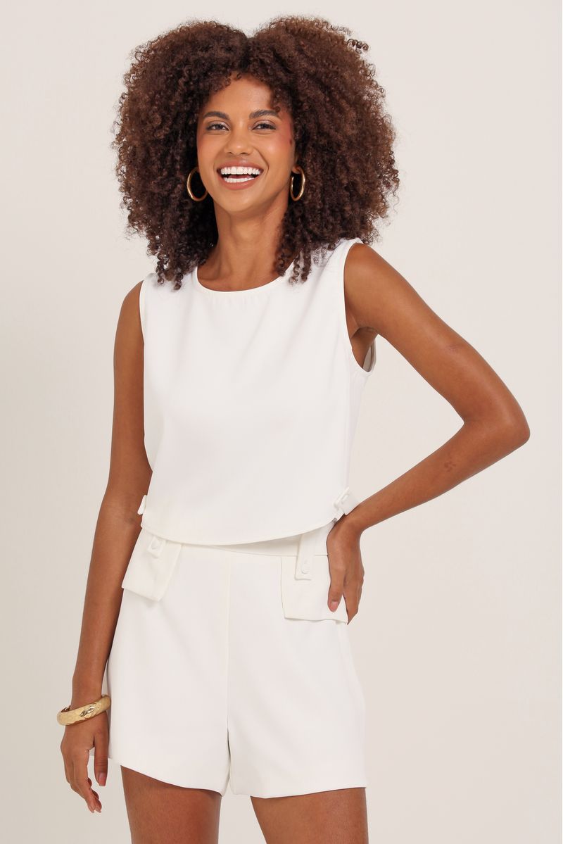 Regata Cropped Detalhe Botão OFF-WHITE