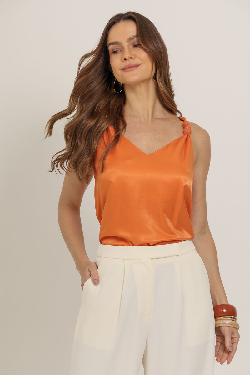 Regata Decote V Com Detalhe Na Alça LARANJA