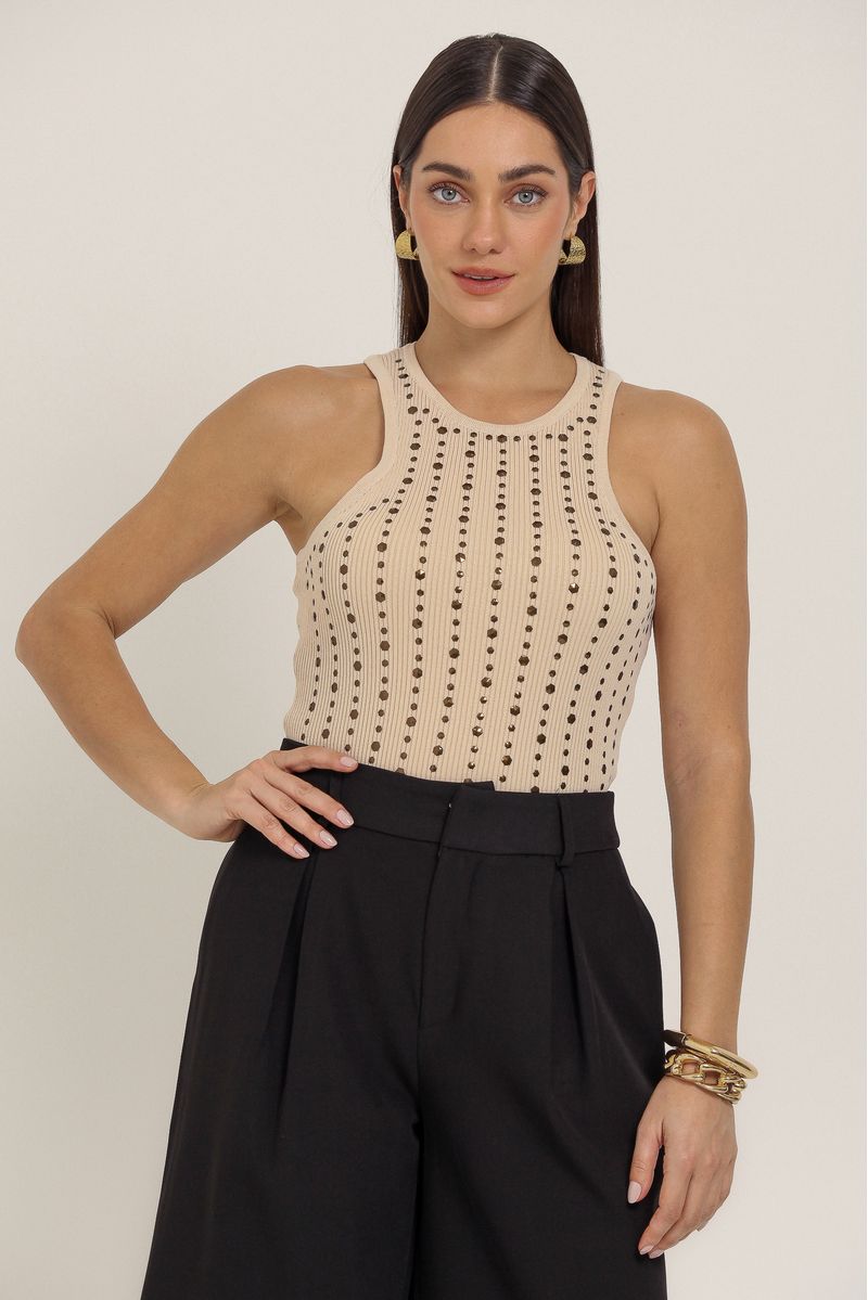 Regata Tricô Com Strass BEGE