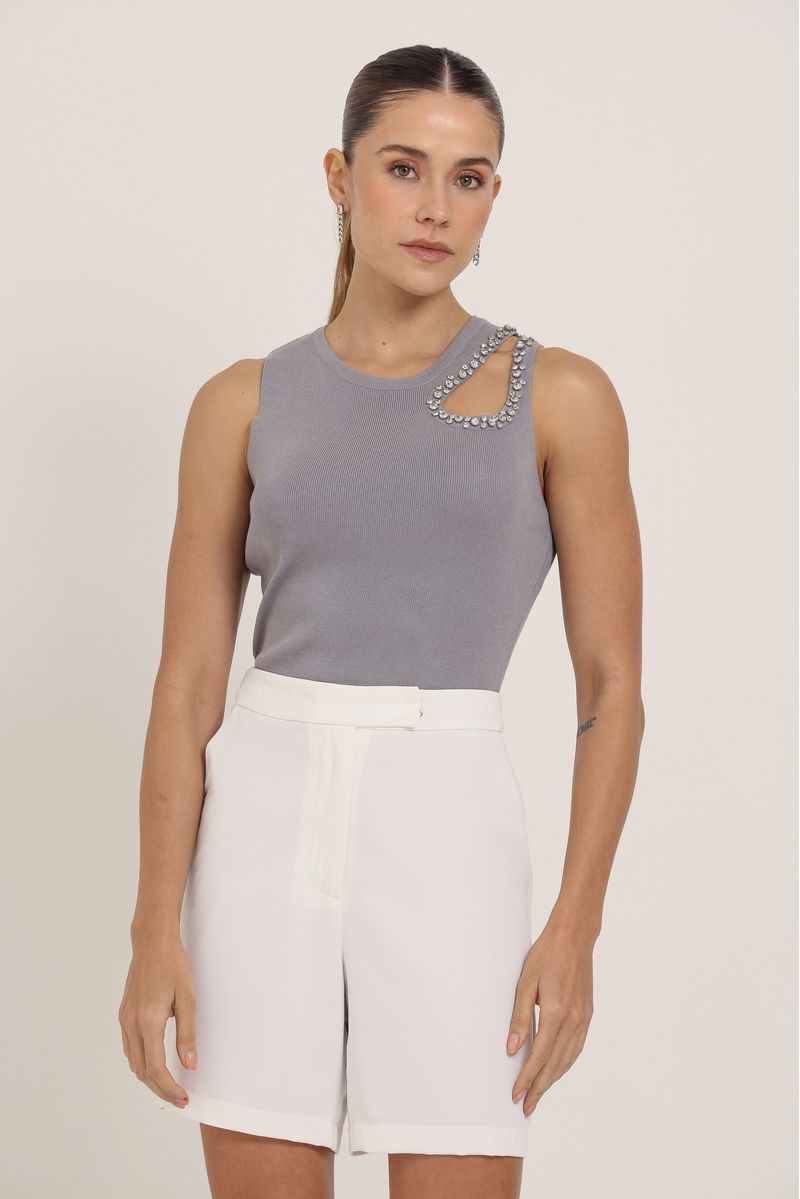 Regata Tricô Vazado Brilho CINZA