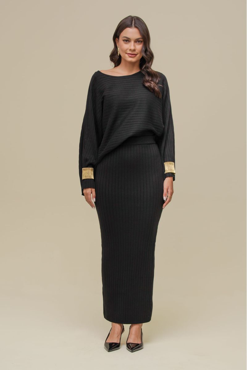 Saia midi reta em tricô encorpado e quentinho, com textura elegante e caimento estruturado. Possui cintura alta com cós médio para um ajuste confortável e fenda discreta na parte de trás, garantindo mobilidade sem perder a sofisticação.