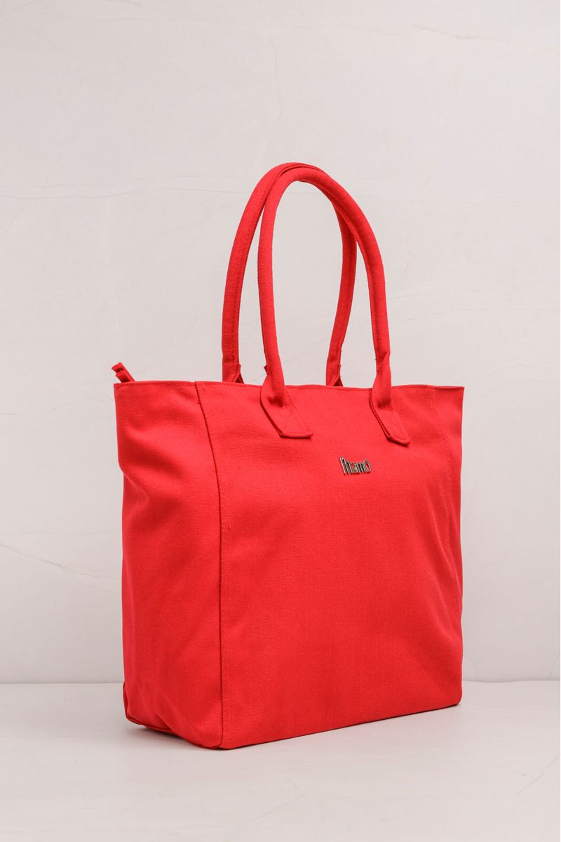 Shopping bag confeccionado em lona, com forro interno e bolsinho com zíper. Alça dupla de ombro, fechamento superior por zíper. Acompanha mini bolsa tipo carteira na mesma cor e material.