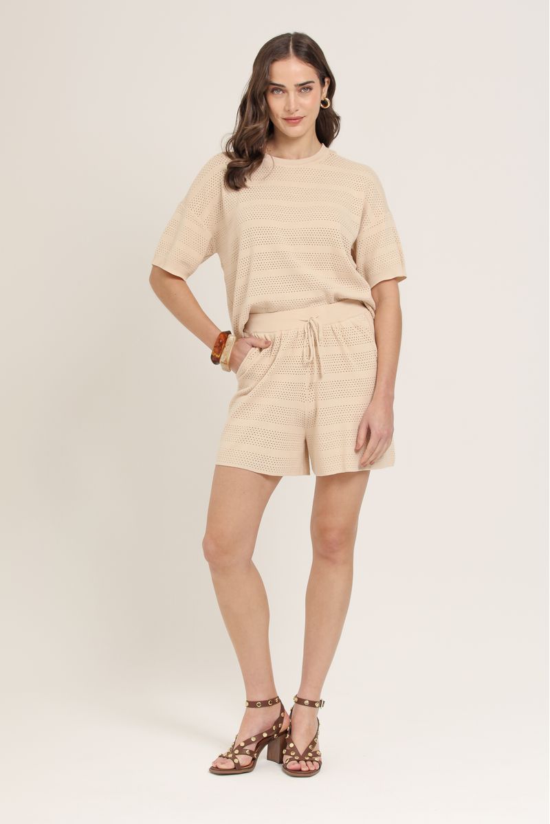 • Shorts em tricô com mini vazados e forro interno