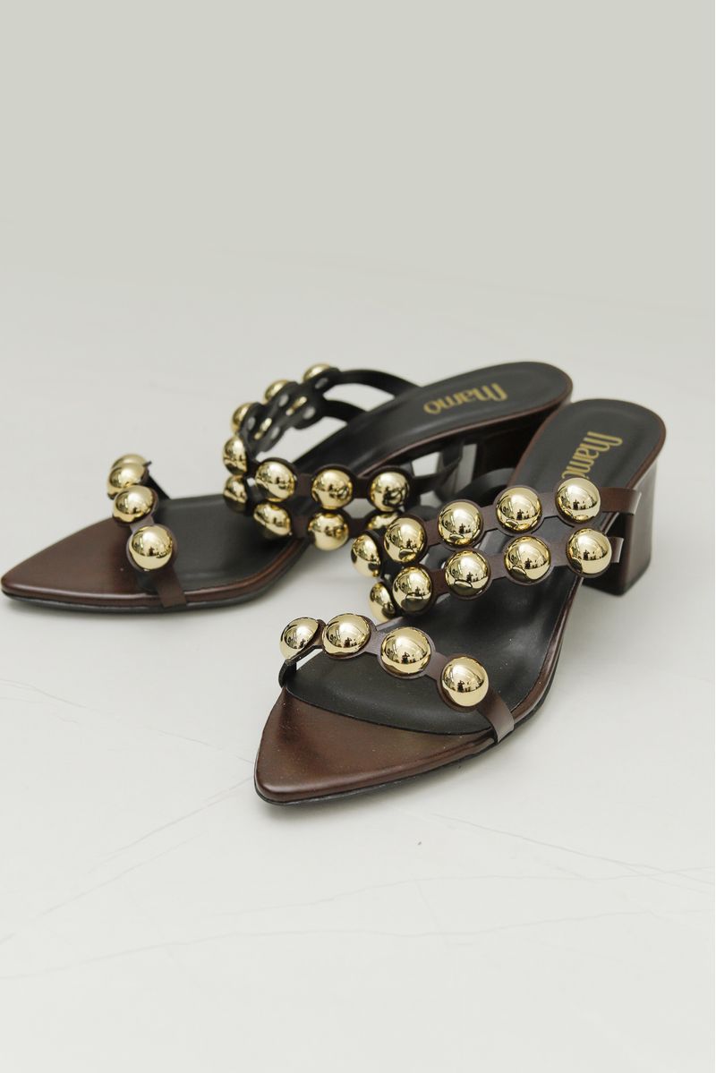 Tamanco Tachas Salto Bloco MARROM