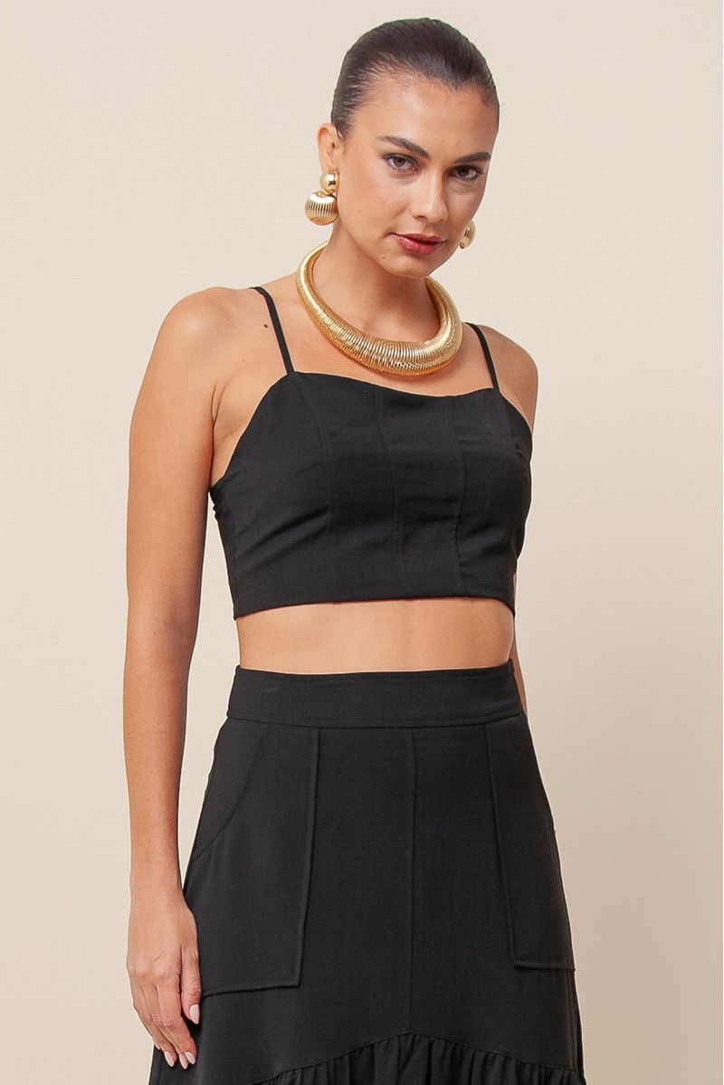 Top em crepe apresenta um encantador decote coração e alças finas reguláveis, garantindo conforto e um ajuste perfeito. Com lastex nas costas, ele se adapta ao corpo, proporcionando um caimento impecável.