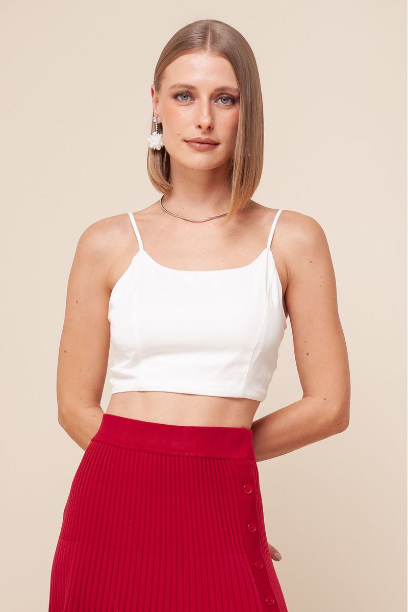 Top básico em viscose, com alças finas reguláveis e detalhe de lastex nas costas para maior conforto e ajuste ao corpo.
