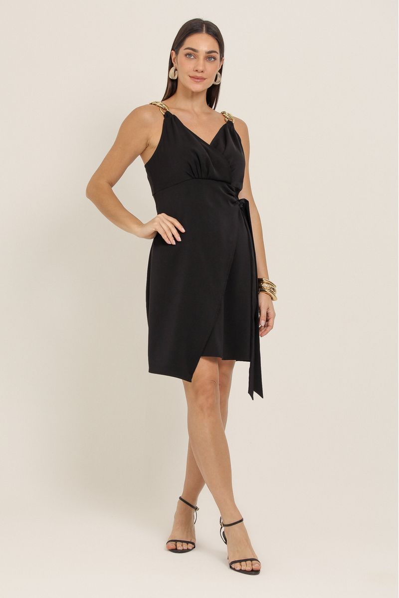 Vestido Curto Alça Corrente PRETO