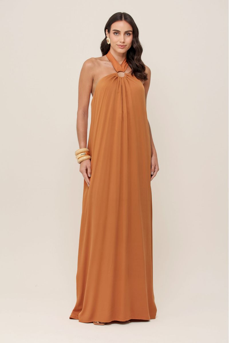 • Vestido longo frente única em viscose leve