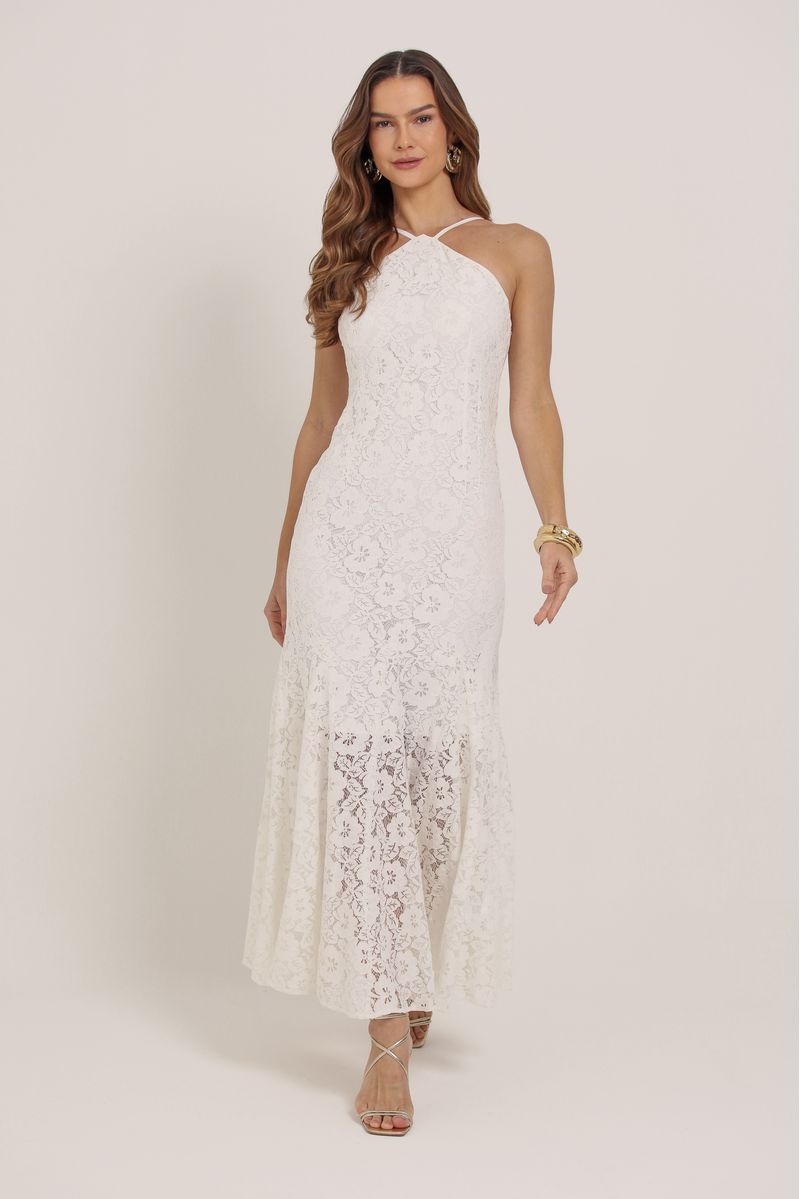 • Vestido longo em renda com forro interno